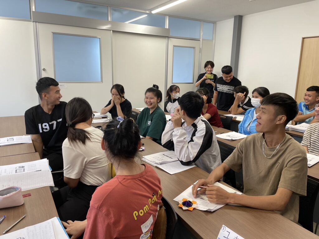 日本語法定講習では、ベトナム人の技能実習生たちの日本語の勉強の成果を発揮するため、インターン生に日本語で質問をしてもらいました。